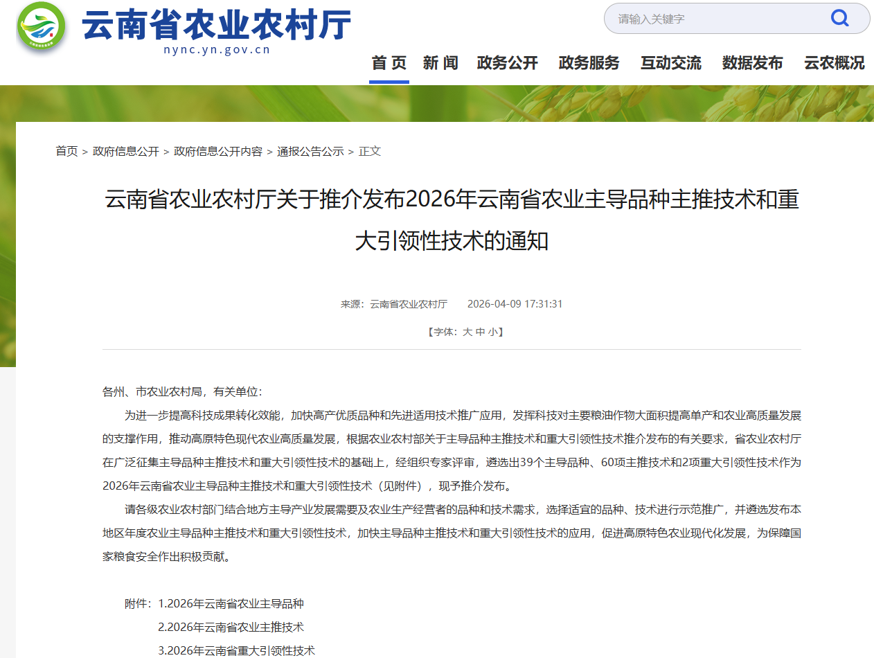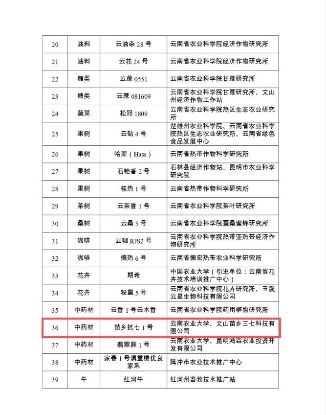 苗乡抗七1号入选2026年云南省农业主导品种,这是‘苗乡抗七1号’继2023—2024连续两年入选云南省农业主导品种后第三次获此省级认可!